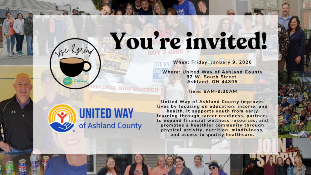 Kick off the new year with purpose and connection at our Rise & Grind Networking Event hosted by United Way of Ashland County. Join us for coffee, conversation, and community impact as we learn how United Way is improving lives through education, income, and health initiatives right here in Ashland County.